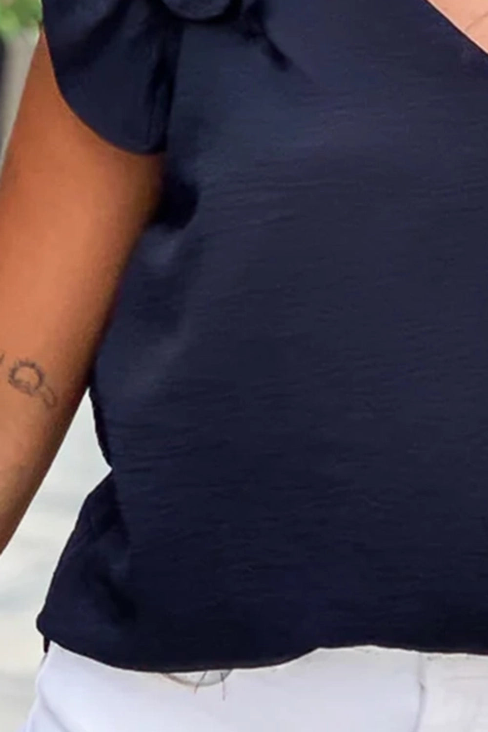 V-neck double layer top with flutter sleeve detail.