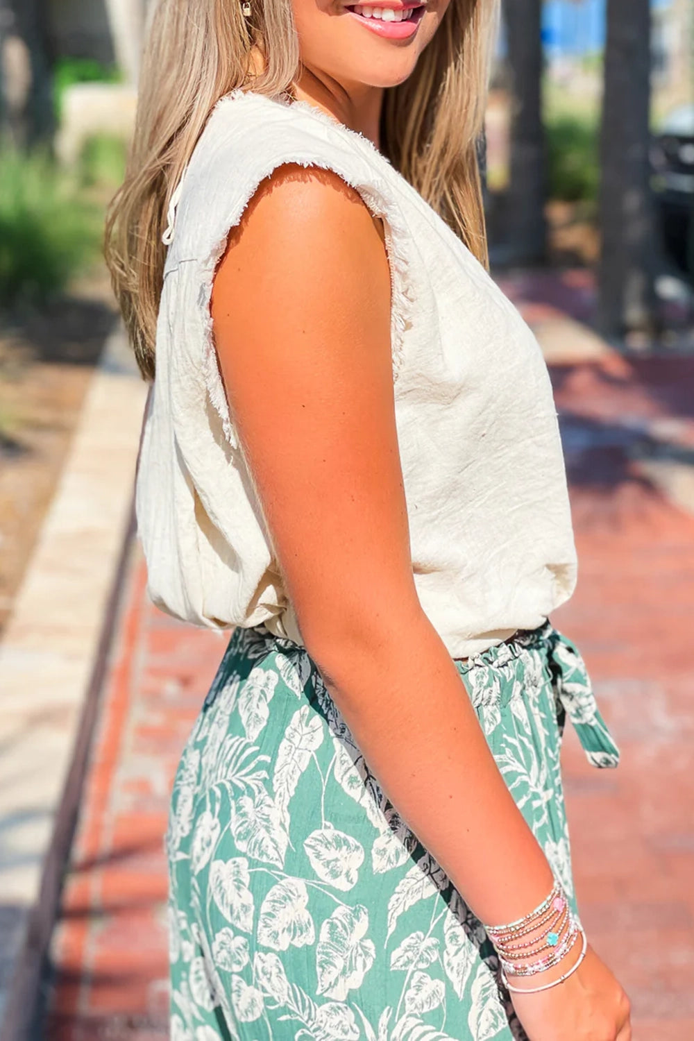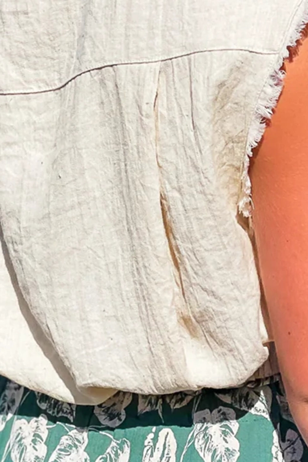 Show your style in this v-neck frayed hem crop top! Pair with your favorite pants or shorts for a fun summer look!